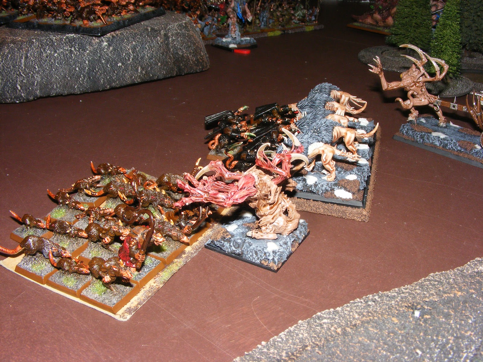 Sooo, turns out I forgot a Ghorgon (easy to forget - he wasn't there for long) and some Ungor Raiders (2 units of those). The items I described were probably more accurate in game terms, however I feel Chris' description of them adequately reflects how the game went...