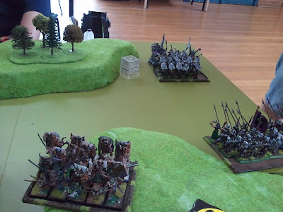 | The Fly Knights look smug atop the hill in the Empire deployment zone. One will note a lack of Greatswords, largely due to their not being there anymore. |