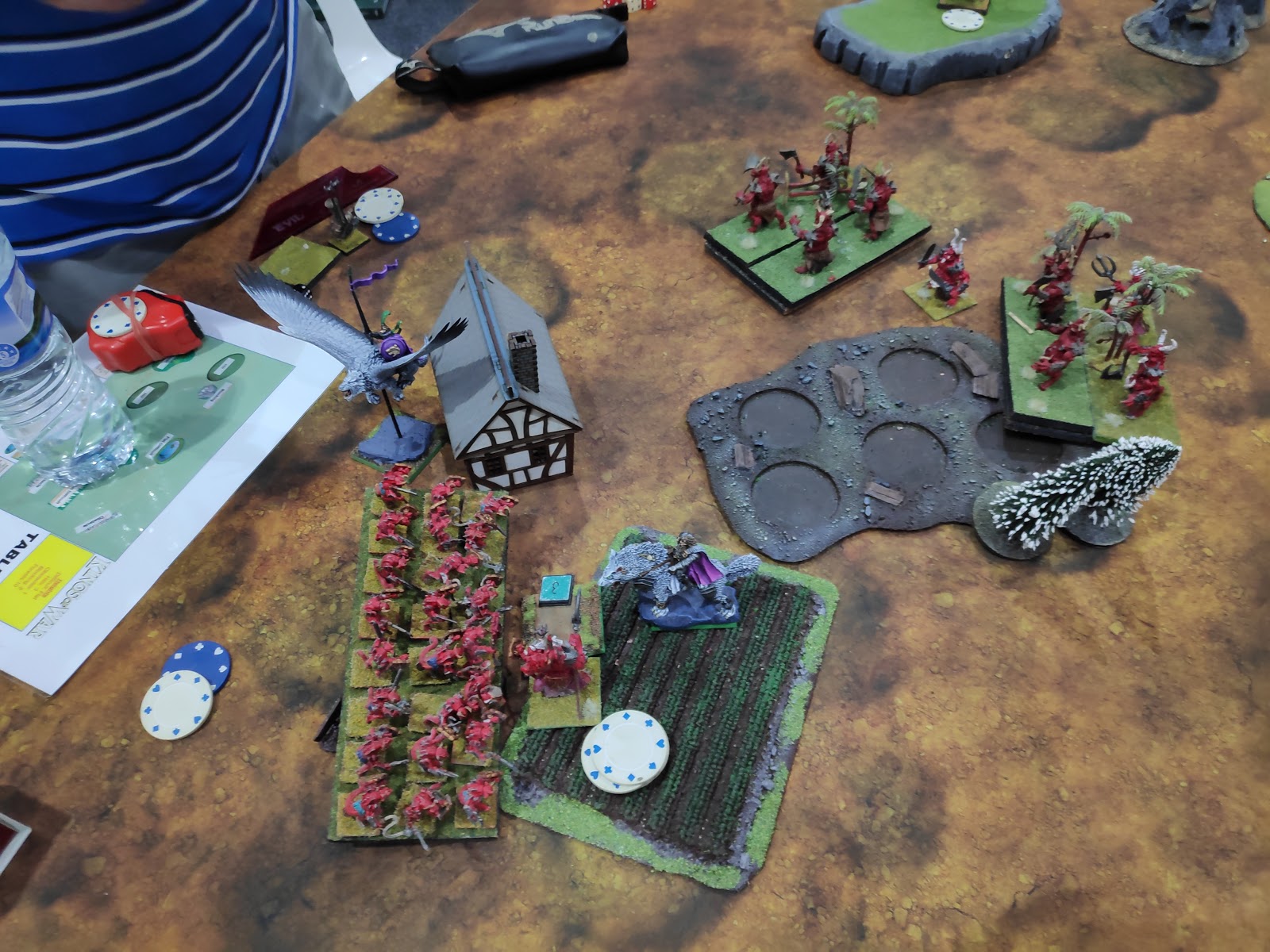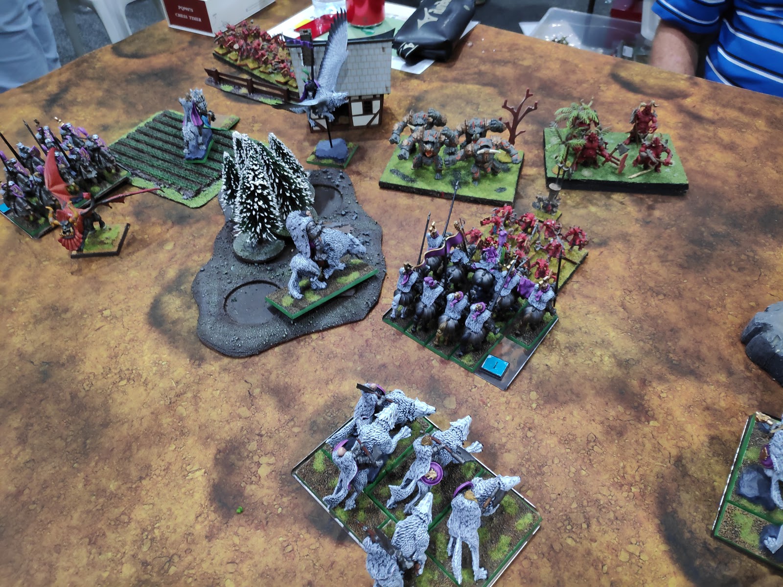 Of course, the Baron wasn't the only one having problems. In fact, that birb up the back was the only one who wasn't. One Moloch horde for each of my units. Note the cunning placement of the Warlock in the middle, in order to give the unit fighting the Knights an unhindered charge.