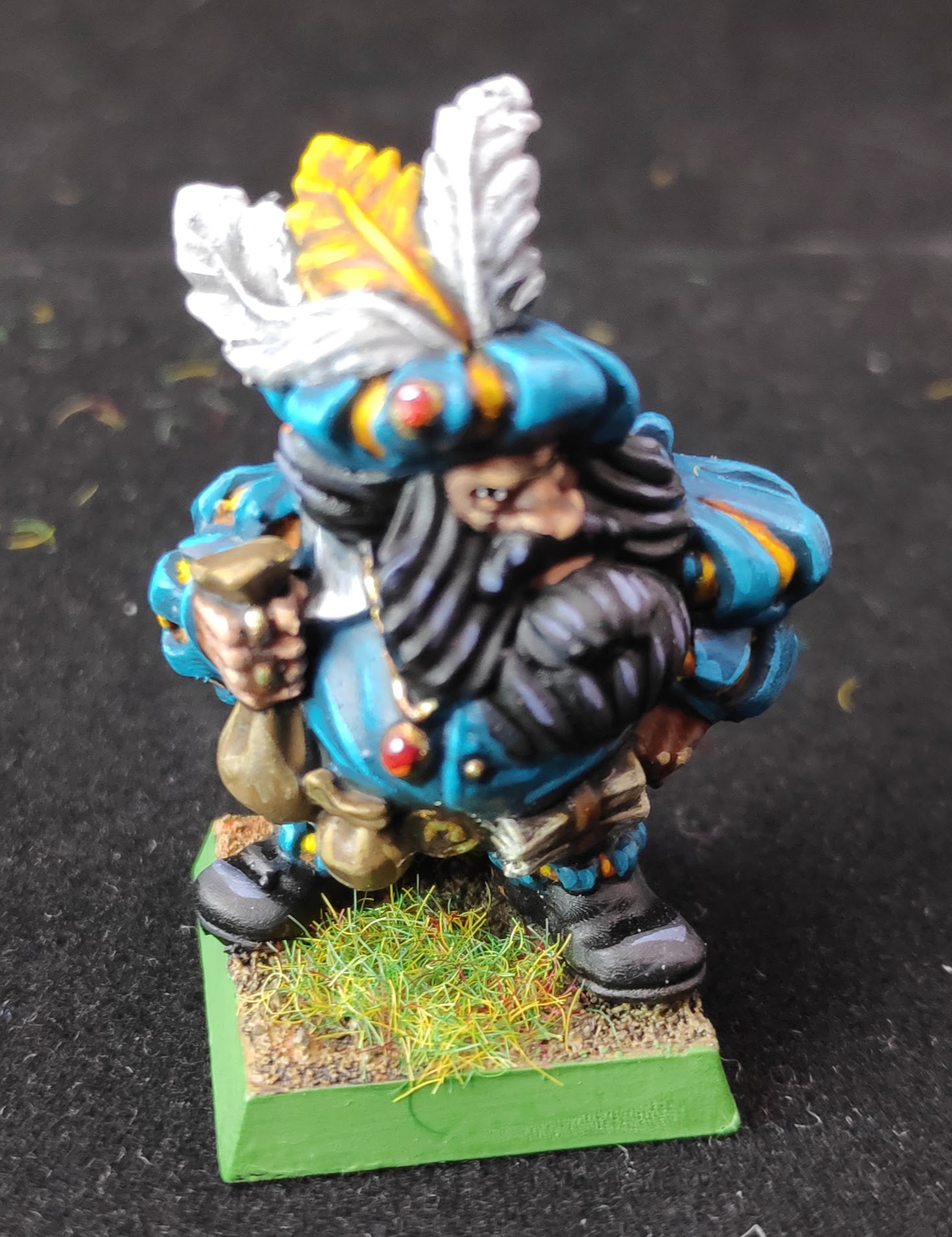 The chap with the fancy clothes is Grubbi Geldsson. This Dwarf owns the tavern. In fact, he owns half the town. Despite being exceedingly wealthy, he spends as little as he can to run and maintain the Brass Farthing. It really is a seedy place.