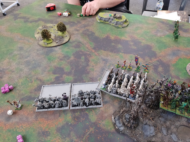 My units were being relatively cautious about the Hammerers at this point. The Eagle had tried and failed to charge the Grudge Thrower, so Harry was surely going to try his luck again. I didn't want to give him a redirect target. The Treeman was the only one who could really advance and stay out of their arc.