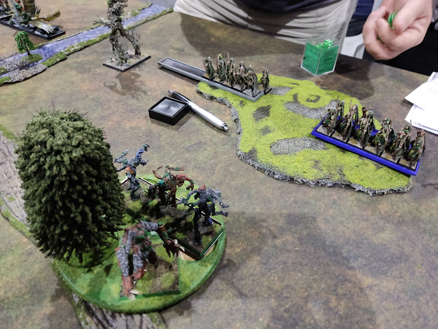 The Treeman was spending his time march blocked, and unable to find a relevant charge target. Strangleroot was having little impact on the Dryads.